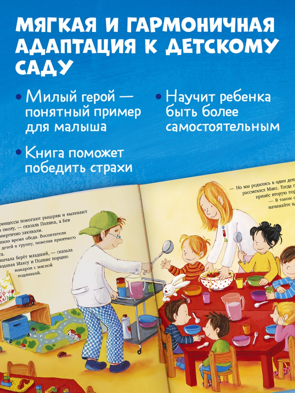 Došanās uz bērnudārzu ir nervus kutinoša. Bet ko darīt, ja dodaties kopā ar Maksu? Tad tas nemaz nav biedējoši, bet gan jautri un aizraujoši! Šī noderīgā grāmata ir paredzēta mazajiem, kas gatavojas vai tikko sākuši apmeklēt bērnudārzu.