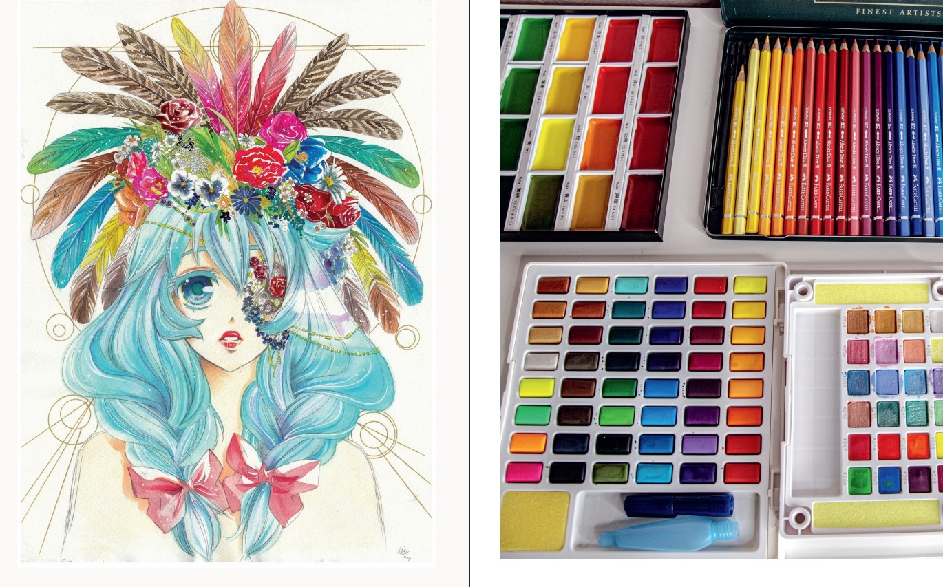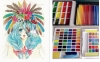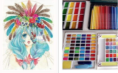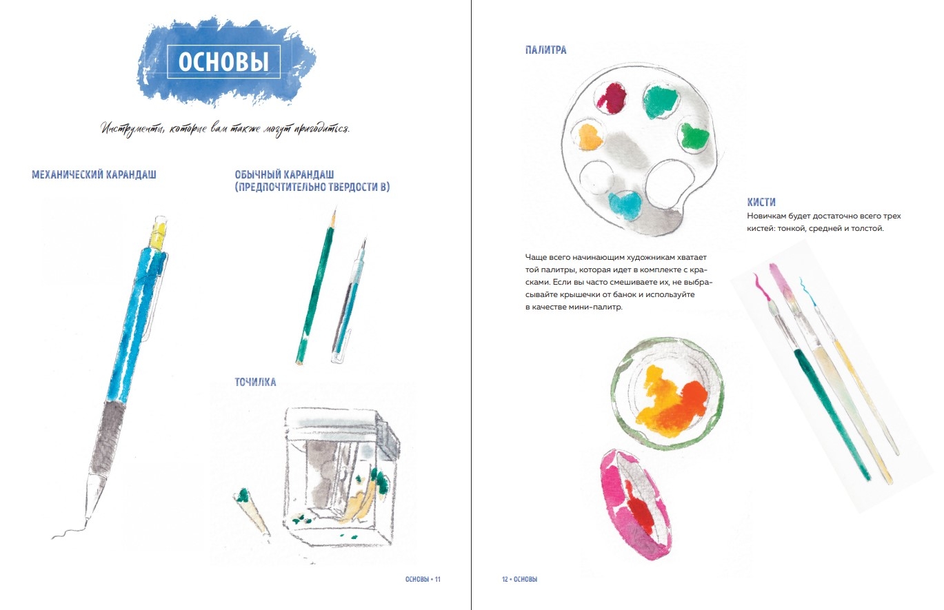 - visu par darbu ar vienkāršākajiem materiāliem — zīmuļiem un akvareļkrāsām;