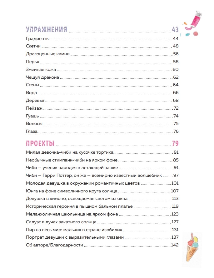 - informāciju par figūras konstruēšanu un sejas vaibstu zīmēšanu klasiskajā un čibi mangas stilos;