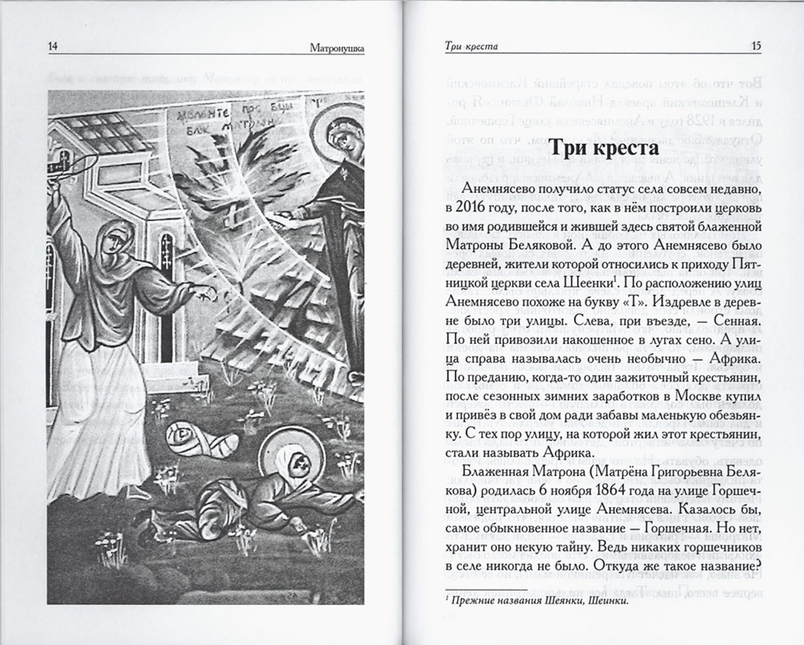 Igora Jevsina grāmata "Matronuška" stāsta par svētīgās Anemņasevo Matronas, taisnīgas sievietes, kura 20. gadsimta pirmajā pusē dzīvoja Rjazaņas apgabalā, dzīvi un garīgajām cīņām.