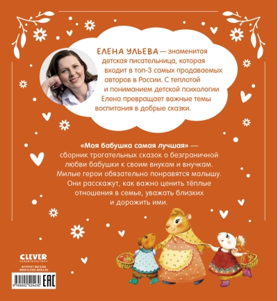 Pasakas, kas ir tikpat omulīgas kā vecmāmiņas apskāviens, stāsti, kas pilni ar vecmāmiņu mīlestību un gudrību, grāmata mazajiem ar skaistām ilustrācijām — tas ir Jeļenas Uļjevas krājums "Mana vecmāmiņa ir vislabākā". Šīs bērnu grāmatas mīļie tēli — zaķīši, kucēni un jūrascūciņas — iepriecinās zēnus un meitenes un iemācīs viņiem novērtēt mīļoto cilvēku laipnību un rūpes. Šie aizkustinošie bērnu stāsti arī pastāstīs, kā vecmāmiņas mīl savus mazbērnus, kā viņas palīdz viņiem pārvarēt grūtības un izskaidro visu, ko viņi nesaprot.