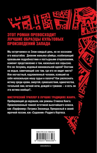 Konstantīna Obrazcova kulta romāna atkārtots izdevums, ievērojamākais un spilgtākais notikums krievu trilleru un mistēriju jomā pēdējos gados! Reta augstākā literārā talanta un valdzinoša, noslēpumaina un šausminoša temata kombinācija. Detektīva šedevrs, kas ir cienīgs pat visprasīgākajam lasītājam, ar visprasīgāko pieeju stilam, tēlainībai, sižetam un aizliegtas tēmas izpētes dziļumam, atkal parādās grāmatu tirgū. Dārgs, elegants, prestižs!