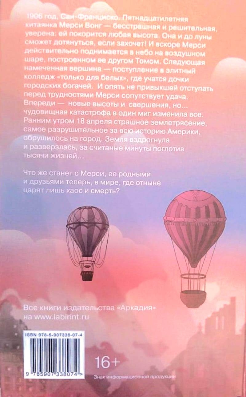 1906. gads, Sanfrancisko. Piecpadsmit gadus vecā ķīniešu meitene Mersija Vonga ir bezbailīga un apņēmīga, pārliecināta, ka var iekarot jebkuru augstumu. Viņa pat varētu sasniegt Mēnesi, ja vēlētos! Un drīz vien Mersija patiešām paceļas debesīs ar gaisa balonu, ko uzbūvējis viņas draugs Toms. Viņas nākamais mērķis ir uzņemšana elitārā, pilnībā baltādaino koledžā, kurā mācās pilsētas bagātnieku meitas. Atkal Mersijai, kura nekad neatkāpjas no izaicinājumiem, veicas. Jauni augstumi un sasniegumi gaidīja, bet... briesmīga katastrofa acumirklī visu mainīja. Agri 18. aprīļa rītā pilsētu skāra briesmīga zemestrīce, postošākā Amerikas vēsturē. Zeme satricināja un atvērās, dažu minūšu laikā aprijot tūkstošiem dzīvību.