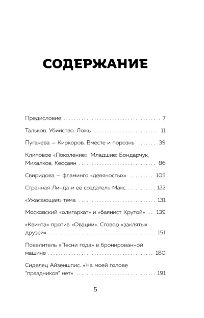 Šajā grāmatā jūs lasīsiet intervijas ar Allu Pugačovu, Borisu Grebenščikovu, Stasu Naminu, Tigranu Keosajanu, Alenu Sviridovu un citiem cilvēkiem, kas veidoja Krievijas šovbiznesu par to, kāds tas ir šodien.