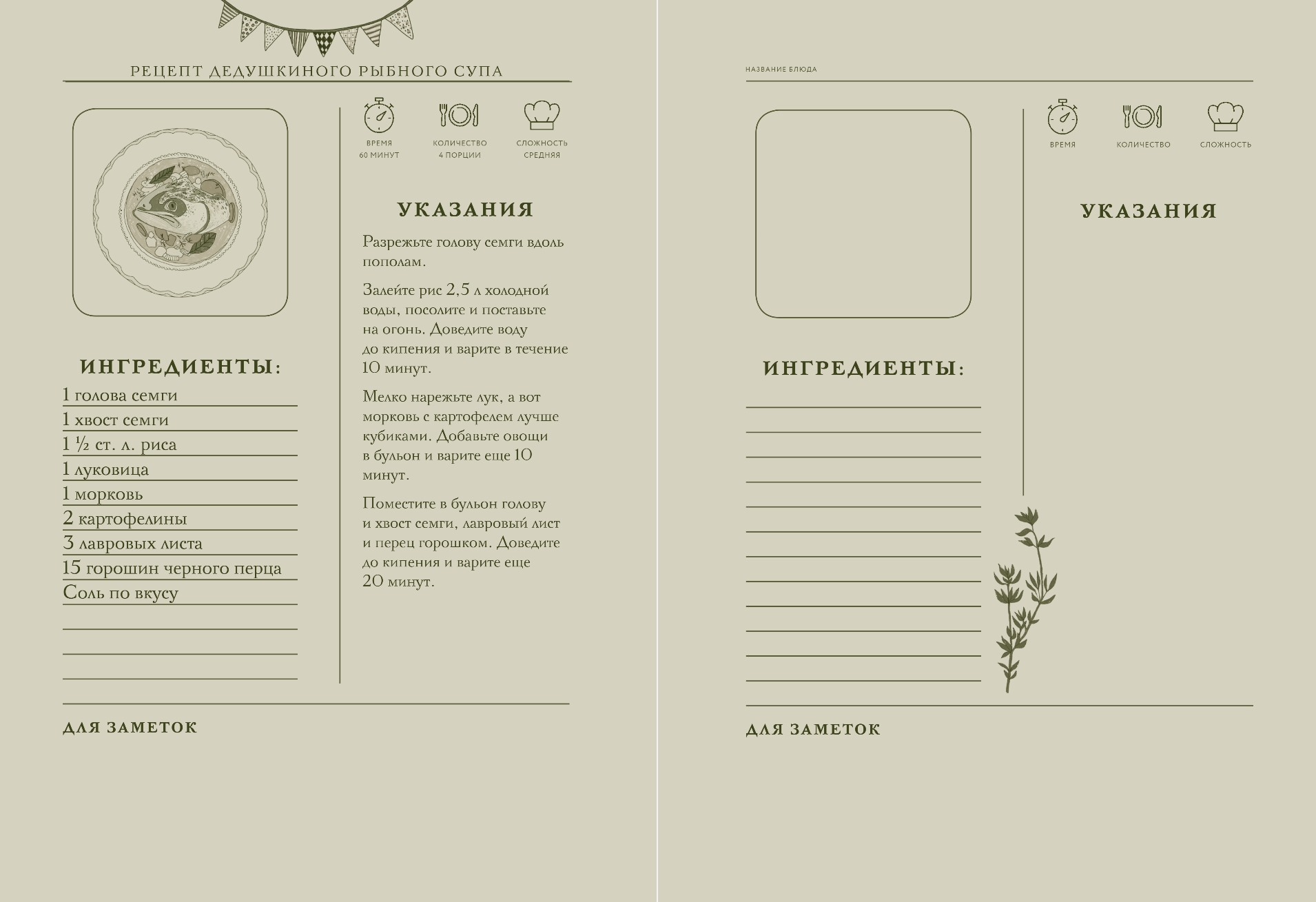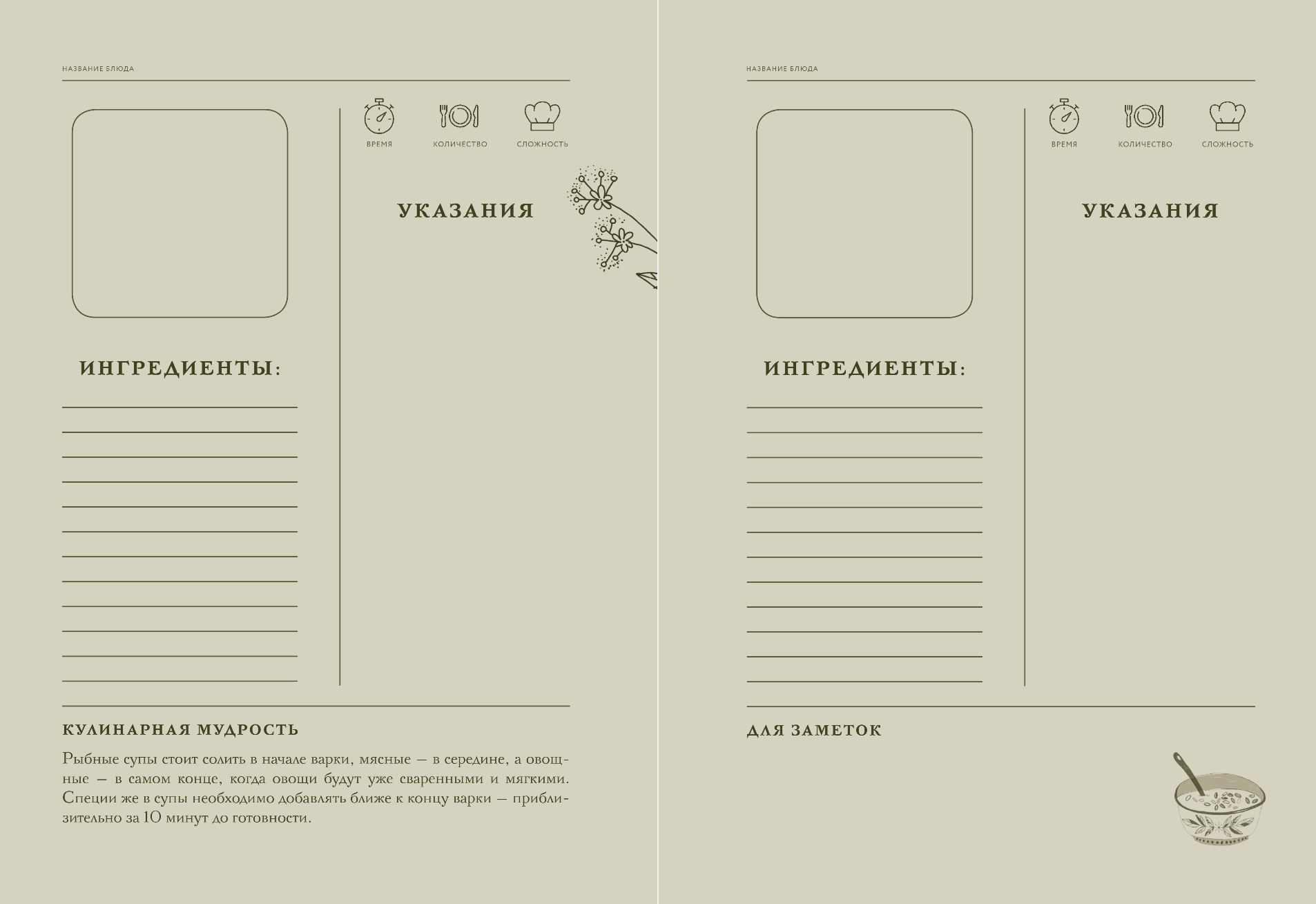 Iekšpusē atradīsiet tematiskus izaicinājumus un vienojošus jautājumus, receptes un gatavošanas padomus, kā arī ērtas vietas savu kulinārijas šedevru pierakstīšanai.