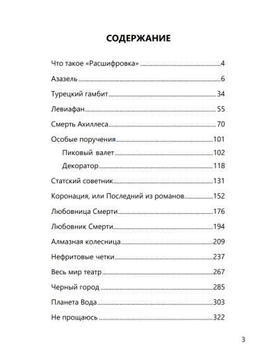 Tiklīdz tika sākta paplašinātā izdevuma publicēšana, lasītāji... sāka pieprasīt, lai "atšifrējumi" tiktu izdoti vienā grāmatā — jo viņiem jau bija Fandorina grāmatas plauktos, un viņi tās nevarēja izmest. Tāpēc šī grāmata ir pielikums grāmatai "Erasta Fandorina piedzīvojumi" (Boriss Akunins).