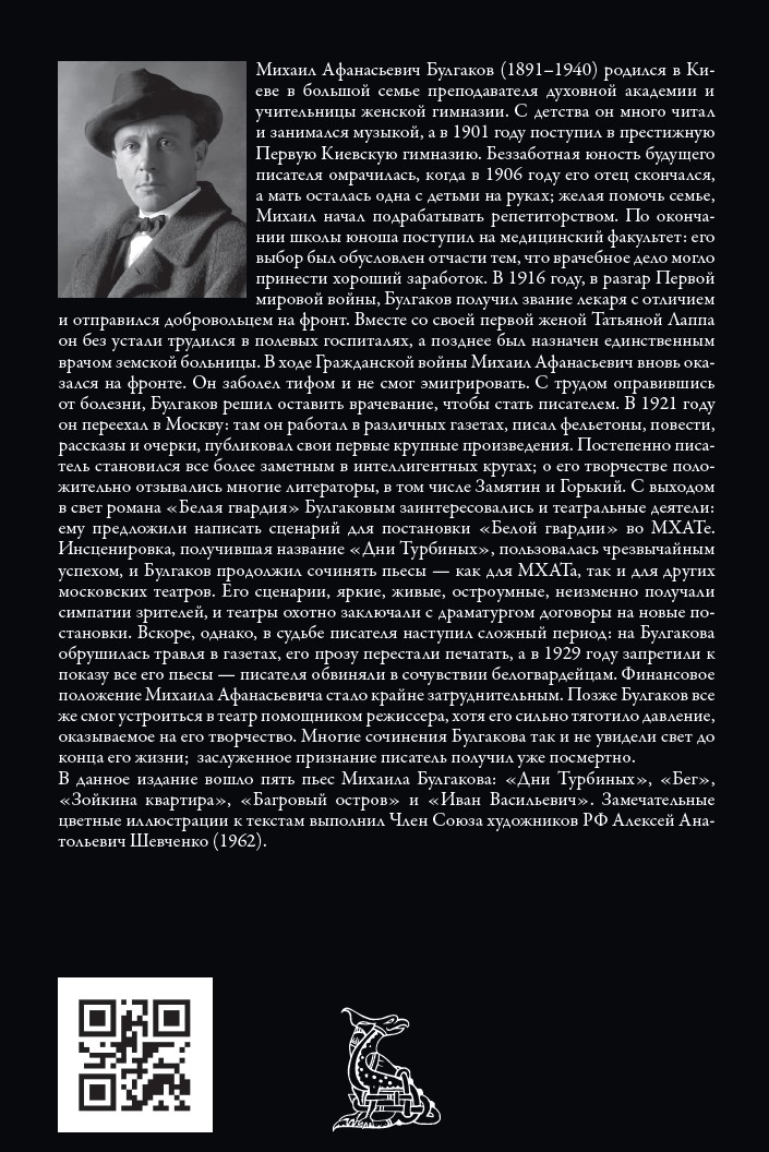 Šajā izdevumā iekļautas slavenā krievu rakstnieka un dramaturga Mihaila Afanasjeviča Bulgakova (1891–1940) lugas: "Turbīnu dienas", "Lidojums", "Zoikas dzīvoklis", "Sārtā sala" un "Ivans Vasiļjevičs". Tajās rakstnieks spilgti attēlojis divdesmitā gadsimta sākuma realitāti, iemūžinājis savas cerības un pieredzi, kā arī skāra vairākas svarīgas, mūžīgas tēmas. Tekstus papildina talantīgā mākslinieka Alekseja Anatoljeviča Ševčenko krāsainas ilustrācijas.