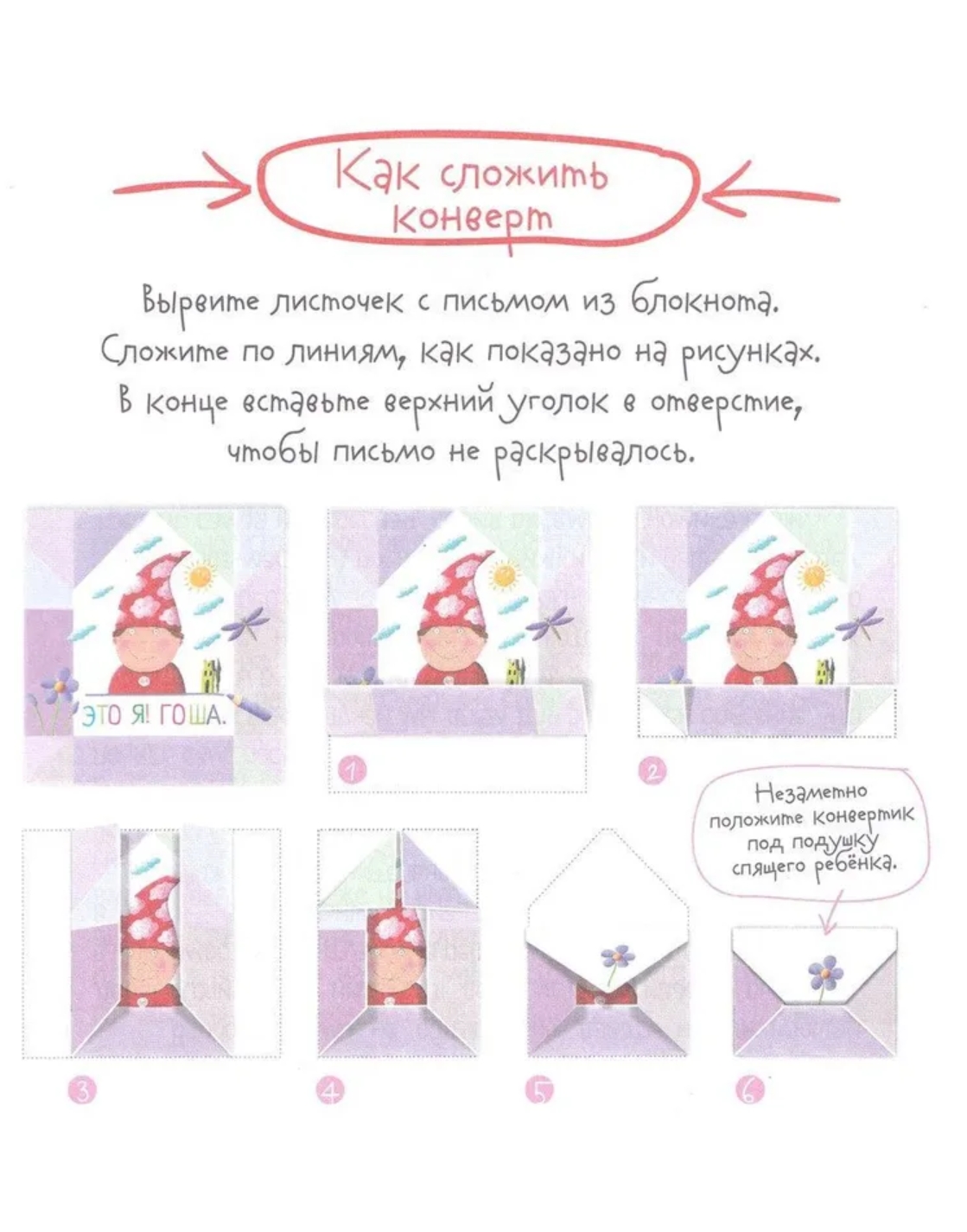Šī piezīmju grāmatiņa piedāvā unikālu lasīšanas mācīšanas metodi. Tajā ir 30 burvju vēstules no rūķīša Goša, kas adresētas bērnam. Bērns tās lasa patstāvīgi, bez pieaugušo palīdzības. Vecākiem vienkārši katru vakaru nemanāmi jānovieto aizpildītā vēstule zem bērna spilvena miegam. Grūtības līmenis ir paredzēts bērniem, kuri zina burtus un var izlasīt vienkāršas zilbes. Ja vēlas, bērns var uzrakstīt atbildi rūķītim. Piezīmju grāmatiņā ir iekļautas gatavas aploksnes vēstules un pastmarku uzlīmes. Vēstulei var pievienot arī papīra lapu ar interesantu uzdevumu.