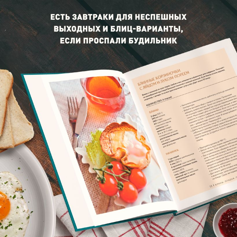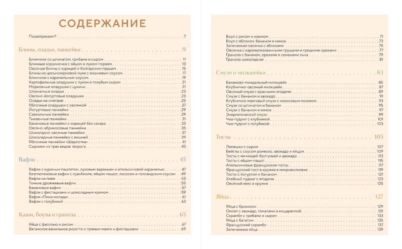Grāmatas vāka apakšā jūs gaida 62 receptes, ar kurām varēsiet strauji iesākt rītu: pankūkas un pankūkas, vafeles, putraimi, grauzdiņi, granola un smūtijs steidzīgajiem. Jūs varēsiet pagatavot: