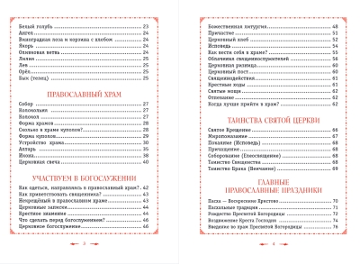 Grāmatas beigās ir īss baznīcas terminu glosārijs, kā arī svarīgākās lūgšanas. Grāmatas neapšaubāmā vērtība slēpjas košās, krāsainajās ilustrācijās, ko veidojis ievērojamais bērnu mākslinieks Igors Pankovs, kas izskaidro daudzas baznīcas dzīves detaļas. Šīs ābeces lappusēs redzēsiet arī svarīgākās krievu pareizticības ikonas, kas gleznotas Andreja Bojarova darbnīcā.