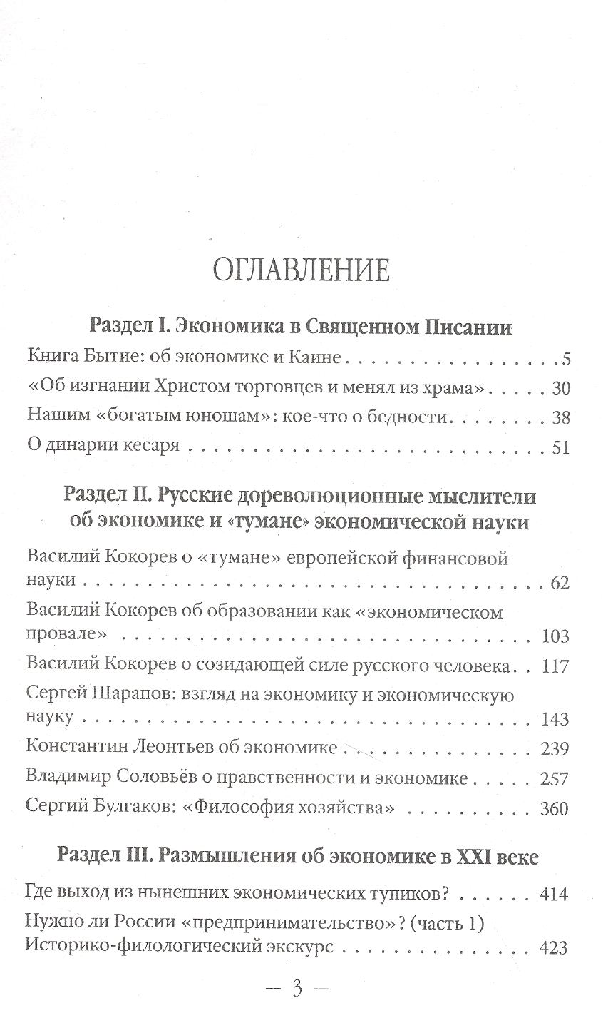 Grāmata ietver darbus no plaša žanru klāsta: Bībeles stāstu interpretācijas, esejas par pirmsrevolūcijas Krievijas ekonomisko domu, žurnālistiskas pārdomas par Krievijas un mūsdienu pasaules ekonomiku, komentāri par dokumentiem, kā arī teoloģiskas un filozofiskas esejas par ekonomikas garīgo būtību.