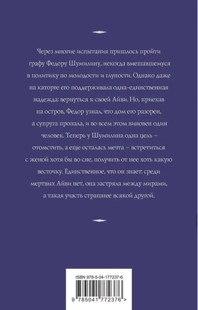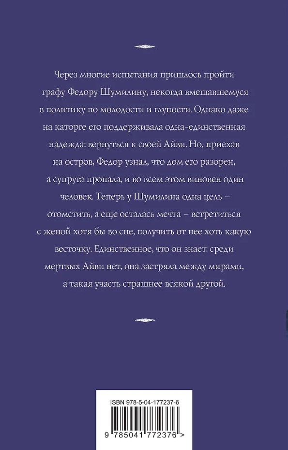 Grāfs Fjodors Šumiļins, kurš savulaik jaunības un muļķības dēļ iesaistījās politikā, ir pārcietis daudzus pārbaudījumus. Tomēr pat katorgā viņu uzturēja viena cerība: atgriezties pie savas Efejas. Taču, ierodoties salā, Fjodors uzzina, ka viņa māja ir nopostīta, sieva ir pazudusi un pie visa vainīgs ir viens vīrietis. Tagad Šumiļinam ir tikai viens mērķis — atriebība —, un viņš joprojām sapņo satikt savu sievu, pat ja tikai sapnī, un saņemt no viņas kaut kādu ziņu. Vienīgais, ko viņš zina, ir tas, ka Eivija nav starp mirušajiem; viņa ir iesprostota starp pasaulēm, un šāds liktenis ir briesmīgāks par jebkuru citu.