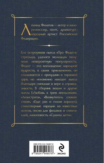 Viņa asprātīgā luga "Par Fedotu, strēlnieku, drosmīgo puisi", kas balstīta uz krievu pasaku, ieguva milzīgu popularitāti. Fedots ir tautas gudrības iemiesojums, kurš savos piedzīvojumos sastopas ar cara kaprīzēm un tirāniju, bet vienmēr atrod izeju, pateicoties savai atjautībai un ticībai taisnīgumam. Televīzijas versija tika demonstrēta padomju televīzijā 1991. gadā.