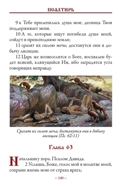 Šis izdevums ir Psalmu tekstu sinodālais tulkojums. Psalmu grāmatas krāsu ilustrācijas veidojis talantīgais franču mākslinieks un grafiķis Žēmens Tiso (1836–1902). Vēloties pēc iespējas precīzāk attēlot Bībeles ainas, Tiso devās uz Svēto zemi, lai labāk izprastu tās iedzīvotāju vēsturi un kultūru, kā rezultātā viņa darbi ir īpaši precīzi un izteiksmīgi.