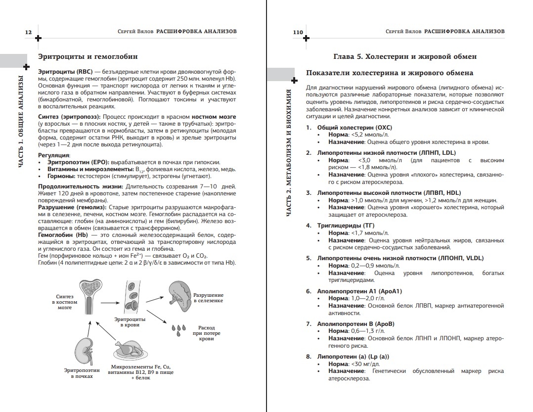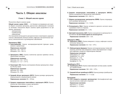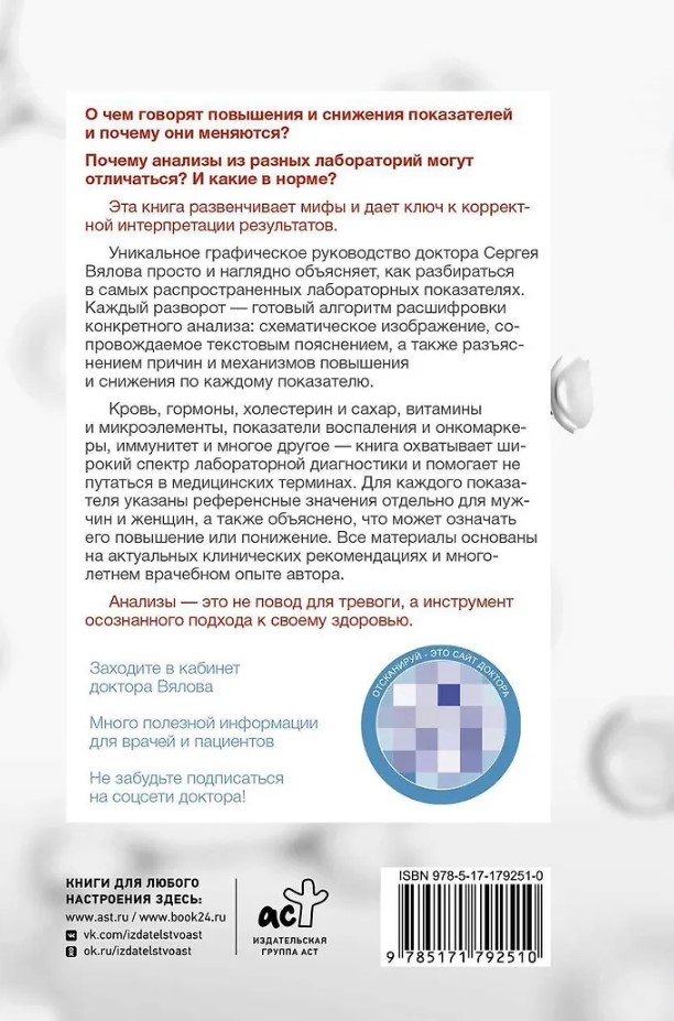 Dr. Sergeja Vjalova unikālais grafiskais ceļvedis vienkārši un skaidri izskaidro, kā izprast visbiežāk sastopamās laboratorijas vērtības. Katrā atvērumā ir piedāvāts gatavs algoritms konkrēta testa interpretācijai: shematiska diagramma ar teksta skaidrojumu, kā arī katra indikatora paaugstināšanās un pazemināšanās cēloņu un mehānismu skaidrojums.
