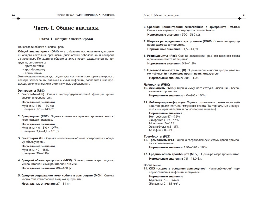 Asinis, hormoni, holesterīns un cukurs, vitamīni un mikroelementi, iekaisuma indikatori un audzēju marķieri, imunitāte un daudz kas cits — grāmata aptver plašu laboratorijas diagnostikas klāstu un palīdz atšifrēt mulsinošu medicīnisko terminoloģiju. Katram indikatoram ir norādītas atsauces vērtības atsevišķi vīriešiem un sievietēm, kā arī skaidrojums par to, ko var nozīmēt paaugstināšanās vai pazemināšanās. Visi materiāli ir balstīti uz pašreizējām klīniskajām vadlīnijām un autora plašo medicīnisko pieredzi.