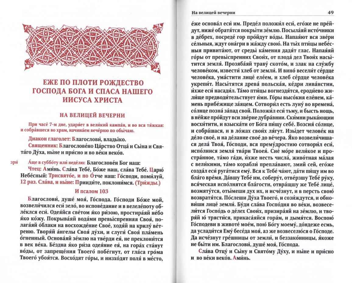 Šis izdevums ir analoģijas formātā, un teksts ir iekrāsots divās krāsās, izmantojot civilo fontu ar akcentiem. Lai atvieglotu lasīšanu, Lielo Stundu līdzību, līdzību un Lielās Ūdens svētīšanas lūgšanu teksti ir attēloti lielā drukā.