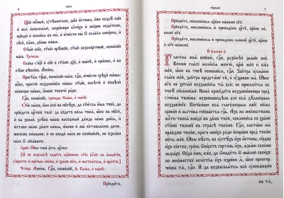 Grāmatas pirmajā daļā ir ietverta Stundu secība, kas tiek dziedāta "Kristus dzimšanas priekšvakarā", un Dievkalpojums mūsu Kunga Dieva un Pestītāja Jēzus Kristus dzimšanai. Tie ir sniegti pēc iespējas pilnīgāk, ļaujot dievkalpojumu pabeigt ar minimālu atsauci uz citām grāmatām. Teksts ir drukāts lielā baznīcas slāvu fontā divās krāsās. Sticheras, irmos un citas dziedātās dievkalpojuma daļas ir atzīmētas dziedāšanai. Elegantie galvas rotājumi, beigas un iniciāļi ne tikai priecē aci, bet arī palīdz viegli atrast pareizo vietu dievkalpojumā.