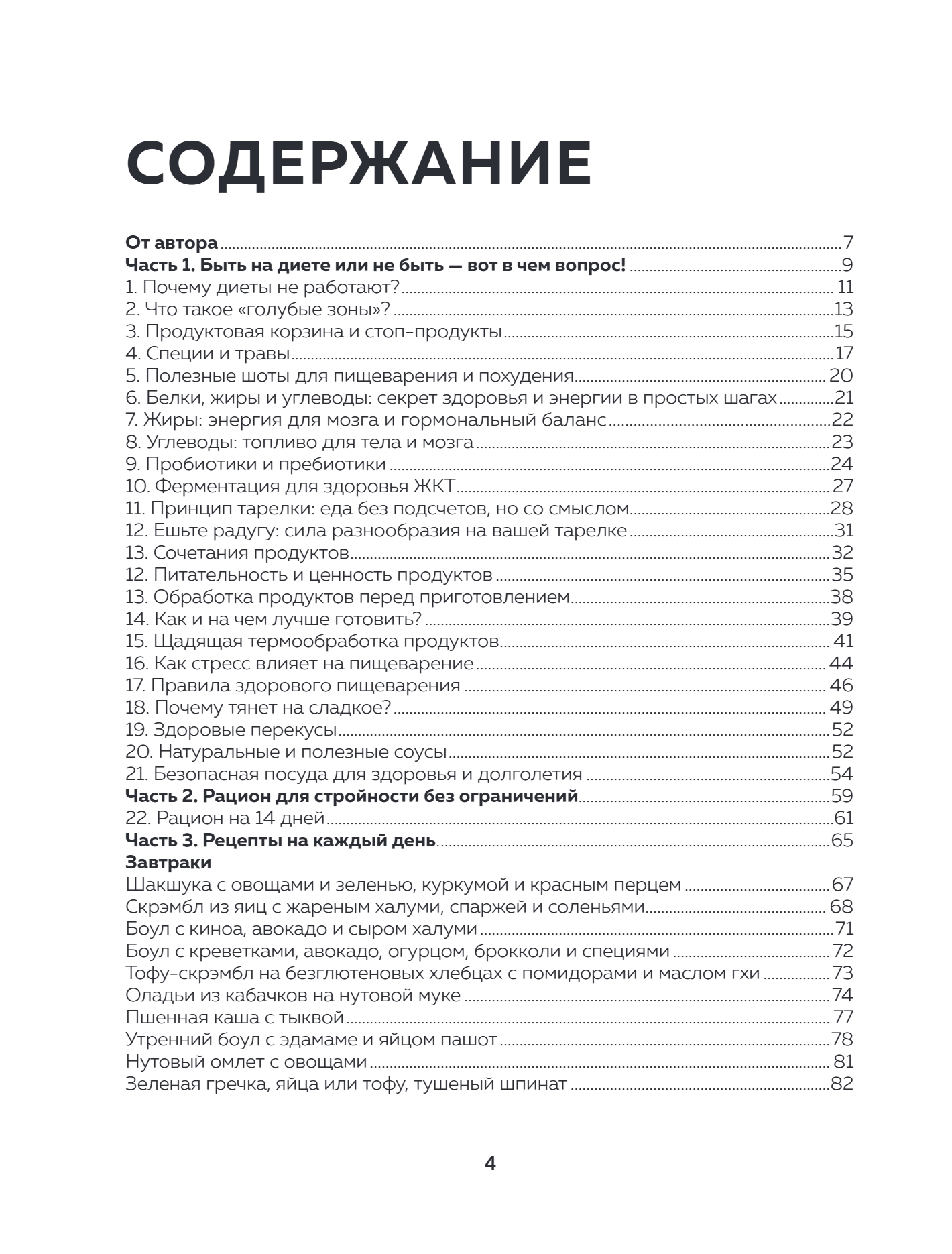 Šajā grāmatā jūs uzzināsiet, kāpēc diētas nedarbojas, kas ir "Zilās zonas", kas ir pārtikas grozs un pārtikas produkti, kas pārtrauc ēst, kā stress ietekmē gremošanu, kāpēc jūs kārojat saldumus, un atklāsiet veselīgas porcijas gremošanai un svara zaudēšanai. Ēdieni, ko jūs pagatavosiet, būs nepieciešami, lai tos iekļautu Aleksandras 14 dienu ēdienreižu plānā.