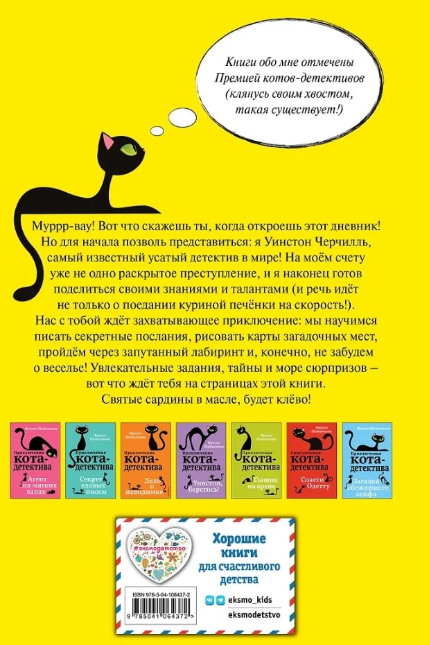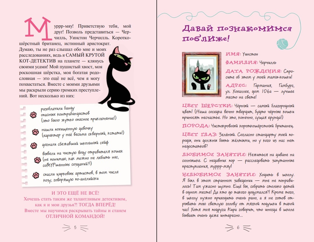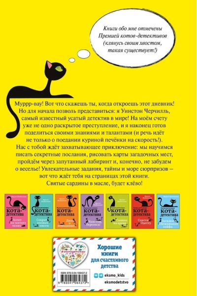 Purrr-vow! To jūs teiksiet, kad atvērsiet šo dienasgrāmatu! Bet vispirms ļaujiet man sevi iepazīstināt: es esmu Vinstons Čērčils, īsspalvains britu, aristokrātisks kaķis un pasaulē slavenākais ūsainais detektīvs! Ar vairāk nekā vienu atrisinātu noziegumu aiz muguras esmu beidzot gatavs dalīties savās zināšanās un talantos (un runa nav tikai par vistu aknu ēšanu ātruma dēļ!). Tevi un mani gaida aizraujošs piedzīvojums: mēs mācīsimies rakstīt slepenus vēstījumus, zīmēsim noslēpumainu vietu kartes, iziesim cauri sarežģītam labirintam un, protams, neaizmirsīsim par jautrību! Aizraujoši uzdevumi, noslēpumi un pārsteigumu jūra - tas tevi gaida šīs grāmatas lappusēs. Svētās sardīnes eļļā, tas būs satriecoši!