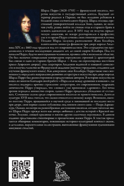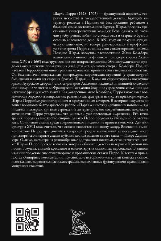 Šarls Pero bija daudzpusīgs un ražīgs rakstnieks. Viņš iegāja mākslas vēsturē lielā mērā pateicoties savam darbam "Paralēles starp senajiem un modernajiem", kurā rakstnieks kritizēja savu laikabiedru tieksmi atdarināt senatni: Pero apgalvoja, ka "mūsdienīgie" jau ir pārspējuši "senos". Viņa viedoklis izraisīja daudz diskusiju, taču Pero turpināja to nelokāmi aizstāvēt. Pasaku rakstīšana rakstnieka laikabiedru vidū tika nosodīta. 17. gadsimta kultūras darbinieki uzskatīja pasakas par zemāka līmeņa žanru. Iespējams, tāpēc Pero, kurš darbojās zinātnieku aprindās un ieņēma ievērojamu amatu galmā, savas pirmās pasakas publicēja ar sava dēla Pjēra Darmankūra vārdu. Tomēr, neskatoties uz viņa daudzveidīgajiem sasniegumiem, mūsdienās lasītāji Šarlu Pero pazīst galvenokārt kā iemīļoto bērnības stāstu par Sarkangalvīti, Pelnrušķīti, Apburto un daudziem citiem pasaku tēliem autoru. Šajā izdevumā Pero pasakas ir attēlotas dzejā un prozā. Tekstiem pievienoti plaši komentāri, kas izskaidro stāstu vēsturisko un kultūras kontekstu, kā arī detalizētas, izteiksmīgas ilustrācijas, ko radījuši pagājušo gadsimtu franču mākslinieki.