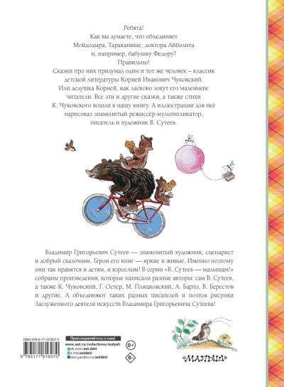 Daudzus gadus K. Čukovskis ir viens no visvairāk lasītajiem bērnu autoriem, pastāvīgi ieņemot augstas vietas dažādos lasītāju vērtējumos. Krājumā "K. Čukovska pasakas, ko ilustrējis V. Sutejevs" ir iekļautas visas Kornija Ivanoviča Čukovska slavenākās pasakas — "Aibolits", "Prusaks", "Moidodors" un citas, kā arī angļu tautasdziesmas, ko ilustrējis slavenais ilustrators, rakstnieks un scenārists V. Sutejevs.