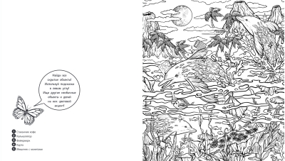 Vērojiet, kā reālās un iedomātās telpas pārveidojas, mainās un atdzīvojas jaunos attēlos, pārsteidzošās detaļās un vissmalkākajās līnijās līdz skaidrības robežai. Piepildiet ar krāsām pasauli, kur maģiskais brīnumainā kārtā ir paslēpts reālajā. Atklājiet acij neredzamos Visumus. Izkrāsojiet un meklējiet slēptos objektus — atklājiet neticamo un skaisto slēpto telpu un veselu pasauļu noslēpumu pazīstamajā.