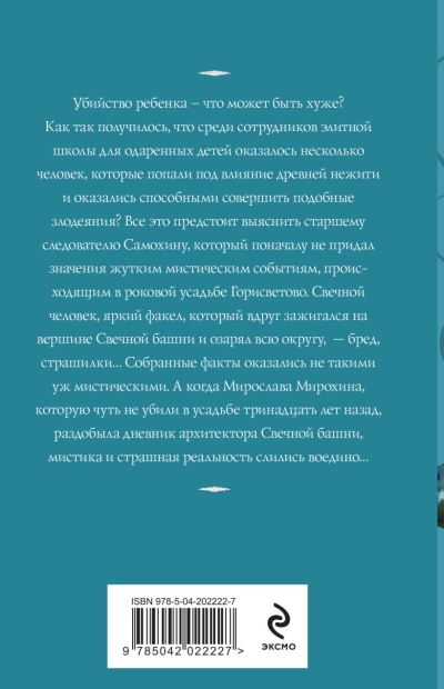 Tas viss ir jānoskaidro vecākajam izmeklētājam Samokhinam, kurš sākotnēji nepiešķīra nekādu nozīmi briesmīgajiem mistiskajiem notikumiem, kas norisinās liktenīgajā Gorisvetovas īpašumā. Sveču vīrs, spožā lāpa, kas pēkšņi iedegās Sveču torņa virsotnē, izgaismojot visu apkārtni - blēņas, šausmu stāsti... Apkopotie fakti izrādījās ne tik mistiski. Un, kad pirms trīspadsmit gadiem muižā gandrīz nogalinātā Miroslava Mirokhina nokļuva Sveču torņa arhitekta dienasgrāmatā, mistika un šausmīgā realitāte saplūda vienā...