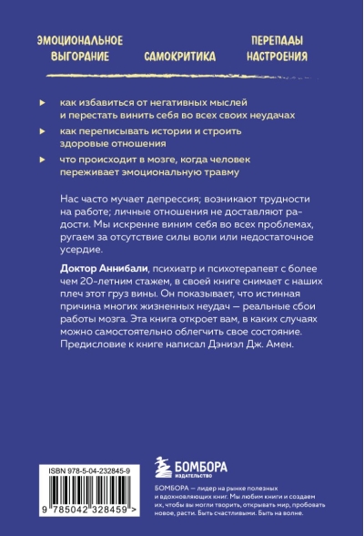 Vai vienmēr esat uzskatījis sevi par slinku, savtīgu, pesimistisku vai histērisku, vainojot savas neveiksmes gribasspēka trūkumā un vēlmē "būt normālam"? Dr. Džozefs Annibali, psihiatrs un psihoterapeits ar divdesmit gadu pieredzi, izmantojot reālās dzīves piemērus, lai pierādītu, ka tās nemaz nav personības iezīmes, bet gan dažādu smadzeņu darbības traucējumu simptomi: ADHD, depresija, obsesīvi kompulsīvi traucējumi, garastāvokļa traucējumi vai bipolāri traucējumi, kā arī emocionālas traumas sekas. Kas jums patiesībā ir nepieciešams, ir savaldīt savas satrauktās smadzenes, atgriežot tās no haosa līdzsvara un miera stāvoklim. Izlasot šo grāmatu, jūs uzzināsiet, kā pats varat atvieglot savu stāvokli un kā ārsts var palīdzēt. Jūs sāksiet labāk izprast sevi un būt tolerantāks pret tiem, kuru uzvedība atšķiras no normas.
