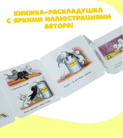 Izbīdāmās grāmatas formāts palīdzēs sekot līdzi nerātno kaķēnu piedzīvojumiem.