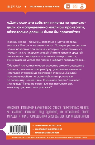 Galvenais varonis ir ārprātīgais, ieslēgts būrī zoodārza vidū. Neviens nezina, kas viņš ir. Rijot krāsainos krītiņus, viņš stāsta mums neaptveramus brīnumus no citu cilvēku dzīvēm. Fizikas skolotājs mazpilsētas vidusskolā nomira krāšņā nāvē, sabrūkot no izsīkuma tieši uz tribīnes stundas vidū...