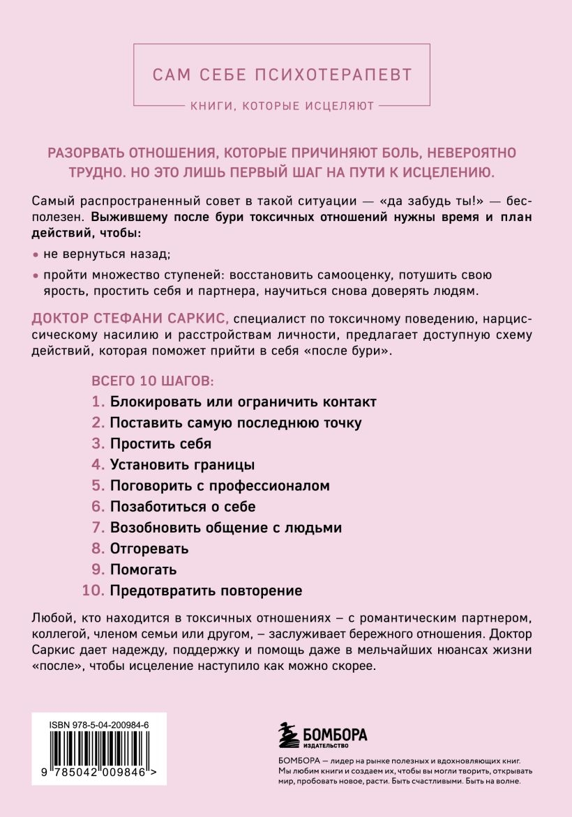 Ikviens, kurš atrodas toksiskās attiecībās — vai tas būtu ar romantisku partneri, kolēģi, ģimenes locekli vai draugu —, ir pelnījis līdzjūtīgu aprūpi. Dr. Sarkis piedāvā cerību, atbalstu un palīdzību pat vismazākajos dzīves aspektos pēc traumas, lai nodrošinātu pēc iespējas ātrāku dziedināšanu.
