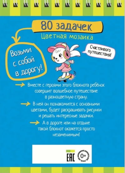 Atverot šo piezīmju grāmatiņu, jūsu bērns nonāks maģiskā krāsu zemē. Viņš atklās un iegaumēs pamatkrāsas, mēģinās krāsot attēlus un risinās aizraujošas mīklas. Šī piezīmju grāmatiņa ir neaizstājama ceļā vai atvaļinājumā. Piemērota bērniem no 3 gadu vecuma.