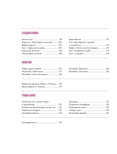 Vai jūs gatavojat brokastis mājās? Pat ja nē, šī grāmata, kuras autores ir Svetlana Mihaļeva un Polina Jurova, kafejnīcas “Eggsellent” dibinātājas, noteikti jūs iedvesmos. Tas ir vienkārši neatvairāmi, skatoties uz vismaigākajām rīta olu kultenēm ar bekonu, auzu pārslām ar “cacio e pepe” vai košajām mačas grauzdiņiem. Pasniedziet tās ar tasi svaigi pagatavotas kafijas – un lūk, tas ir rīta skaistums un burvība.