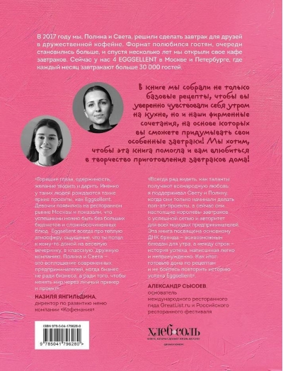 “Eggsellent” stāsts sākās ar vienkāršu vēlmi: pagatavosim lieliskas brokastis draugiem? Un jau vairāk nekā septiņus gadus Polina un Sveta uzņem viesus Maskavā un Sanktpēterburgā četrās kafejnīcās. Un tagad jūs varat pagatavot viņu firmas ēdienus mājās!