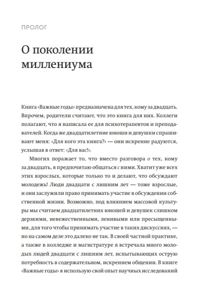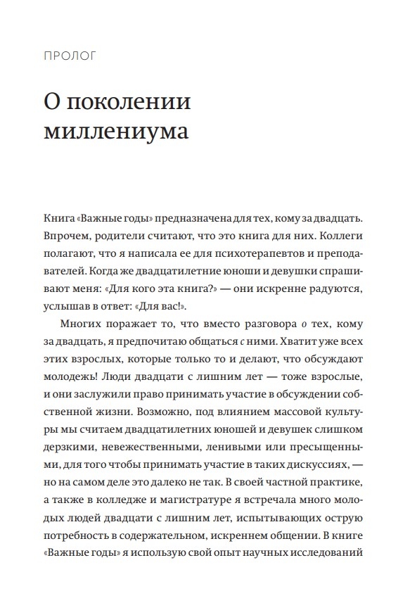 Grāmata ir balstīta uz desmit gadu darbu ar simtiem studentu un klientu, apvienojot jaunākos zinātniskos pētījumus ar reāliem stāstiem no tiem, kas sasniedz trīsdesmit gadu vecumu.