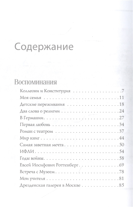 Irina Antonova bija leģendārā Puškina Valsts tēlotājmākslas muzeja direktore, kurā viņa nostrādāja septiņdesmit piecus gadus. Sieviete, kuru pazina visa pasaule. Tās gleznu izstādes, ko viņa rīkoja muzejā, kļuva par spilgtiem Maskavas kultūras fenomeniem. Ar viņu draudzējās dažādu valstu prezidenti, politiķi un vēstnieki, uzskatot par lielu godu savām valstīm eksponēt muzeju kolekcijas Puškina muzejā Maskavā. Savā grāmatā viņa stāsta par savu bērnību, jaunību, kara gadiem, tikšanos ar slaveniem cilvēkiem (to vidū Marku Šagālu, Iļju Erenburgu, A. Matisa sievu Lidiju Delektorsku) un savu kalpošanu lielajai mākslai. Grāmatu organiski papildina fotogrāfijas, kas atspoguļo ne tikai autores dzīves notikumus, bet arī valsts kultūras vēsturi pēdējo sešdesmit gadu laikā.