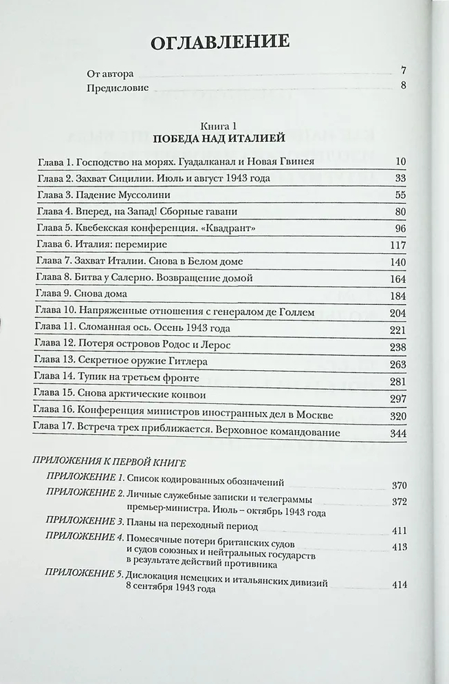 Devītās grāmatas "Uzvara pār Itāliju" saturs apraksta 1943. gada vasaras un rudens notikumus - Sicīlijas un Itālijas ieņemšanu sabiedroto rokās, Musolīni fašistiskā režīma krišanu un gatavošanos operācijai "Overlord".