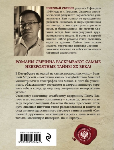 Valsts padomniekam un muižniecības balstam Pāvelam Blagovam un viņa uzticamajam palīgam — izskatīgam, spēcīgam vīram un maskēšanās meistaram — Aleksejam Ļikovam ir jāizvelk šīs izmeklēšanas bīstamie pavedieni un jāatklāj noslēpumainās "Svētās vienības" pretvalstiskās sazvērestības pēdas, kas sapņo iznīcināt ne tikai Krievijas impēriju, bet arī Eiropu.