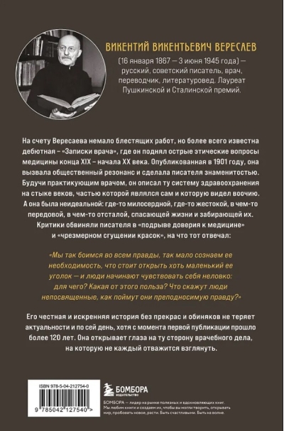 Šie vārdi pieder izcilajam krievu rakstniekam, autoram, tulkotājam un ārstam Vikentijam Veresajevam. Viņa literārā debija "Ārsta piezīmes" sākas ar "atzīšanos" par savu nepilnību, un tajā slēpjas grāmatas šarms. Tā ir pilna ar atzīšanās par bezspēcību un cerībām uz panākumiem, medicīnisko kļūdu un brīnumainu glābšanas gadījumu aprakstiem. Autors apspriež, kas ārstam nepieciešams, lai veiktu veiksmīgu praksi, kā pārvarēt neizbēgamās liktenīgās kļūdas, kas pieļautas pieredzes trūkuma vai tā laika nepilnīgo diagnostikas rīku dēļ, un apspriež neapskaužamo parasto cilvēku situāciju, kuriem trūkst līdzekļu, lai apmaksātu privātās konsultācijas un kuri kļūst par "pabalstiem" medicīnas studentiem. Tas viss padara "Ārsta piezīmes" par unikāli godīgu medicīnas prakses hroniku Krievijā 19. gadsimta beigās un 20. gadsimta sākumā.