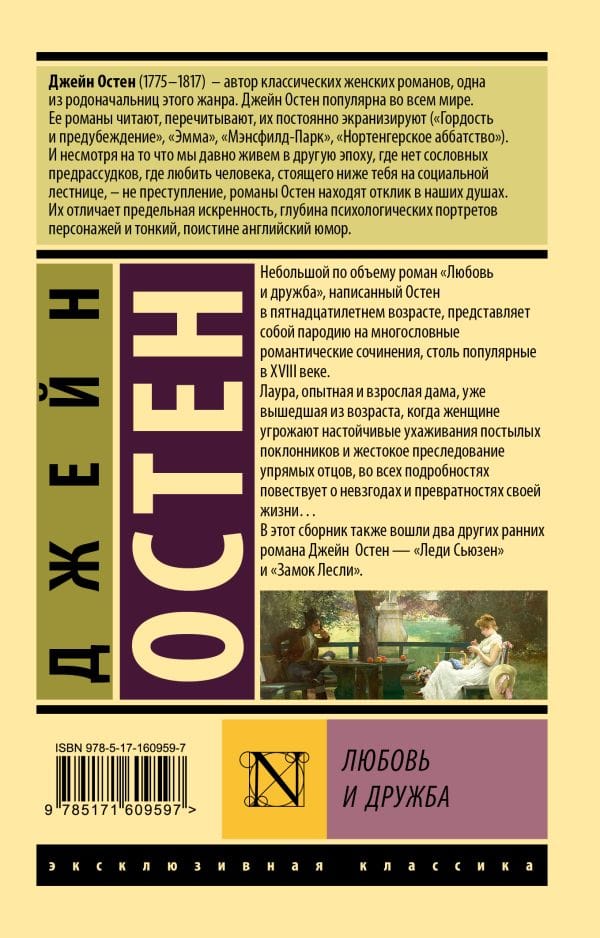 Небольшой по объему роман «Любовь и дружба», написанный Остен в пятнадцатилетнем возрасте, представляет собой пародию на многословные романтические сочинения, столь популярные в XVIII веке.