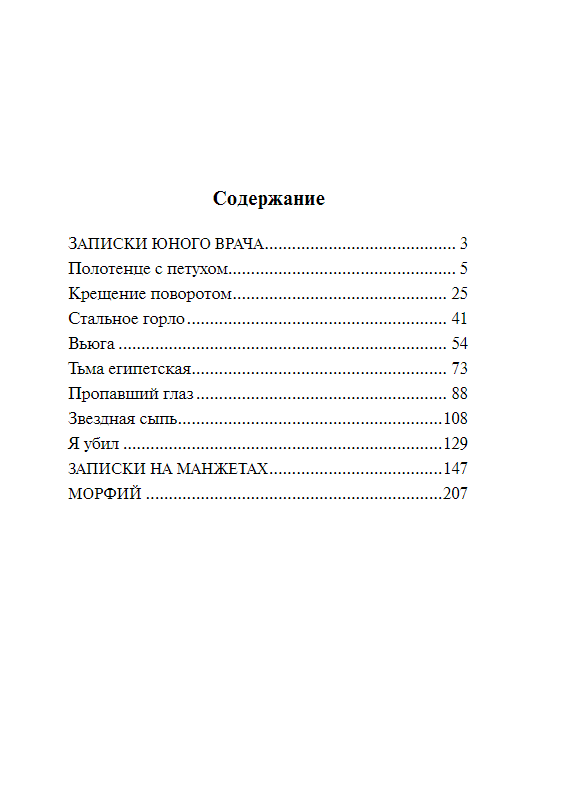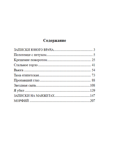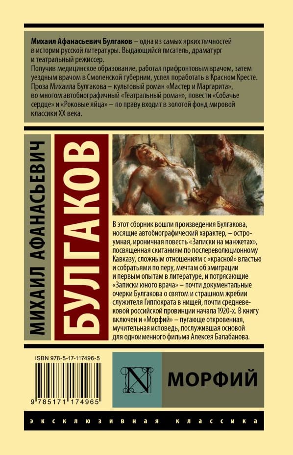 В этот сборник вошли произведения Булгакова, носящие автобиографический характер, — остроумная, ироничная повесть «‎Записки на манжетах»‎, посвященная скитаниям по послереволюционному Кавказу, сложным отношениям с «‎красной»‎ властью и собратьями по перу, мечтам об эмиграции и первым опытам в литературе, и потрясающие «‎Записки юного врача»‎ — почти документальные очерки Булгакова о святом и страшном жребии служителя Гиппократа в нищей, почти средневековой российской провинции начала 1920-х. В книгу включен и «‎Морфий»‎ — пугающе откровенная, мучительная исповедь, послужившая основой для одноименного фильма Алексея Балабанова.
