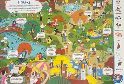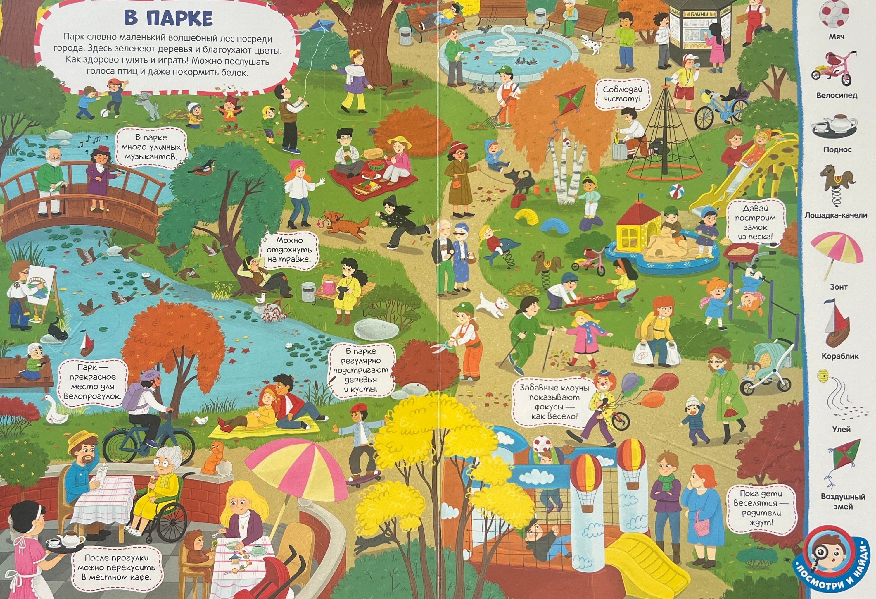 Виммельбух с окошками «Город» — это большая красочная книга-картинка, на страницах которой малыш сможет отправиться в настоящее путешествие по людному мегаполису. Окошки с интересными фактами дополняют сюжет иллюстраций весёлыми и необычными деталями. На каждой странице вас будет сопровождать семейство гусей, которые тоже живут в этом городе и превращают обычную прогулку по парку в весёлое приключение. Окошки имеют удобную выемку для детских пальчиков, чтобы ребёнку было удобно открывать их. Книга выполнена из плотного картона с ламинированной обложкой. Листайте книгу вместе с малышом, открывайте окошки и отправляйтесь на прогулку в чудесном настроении!