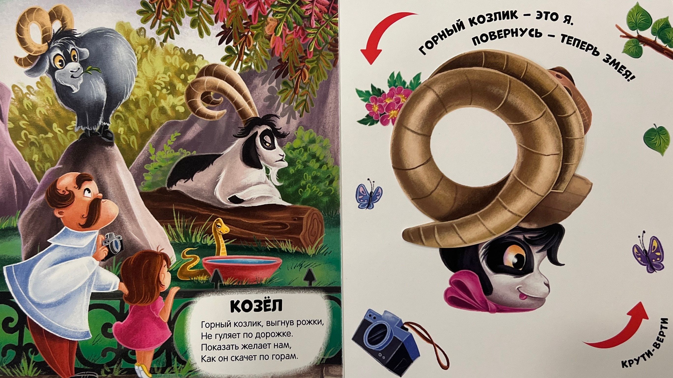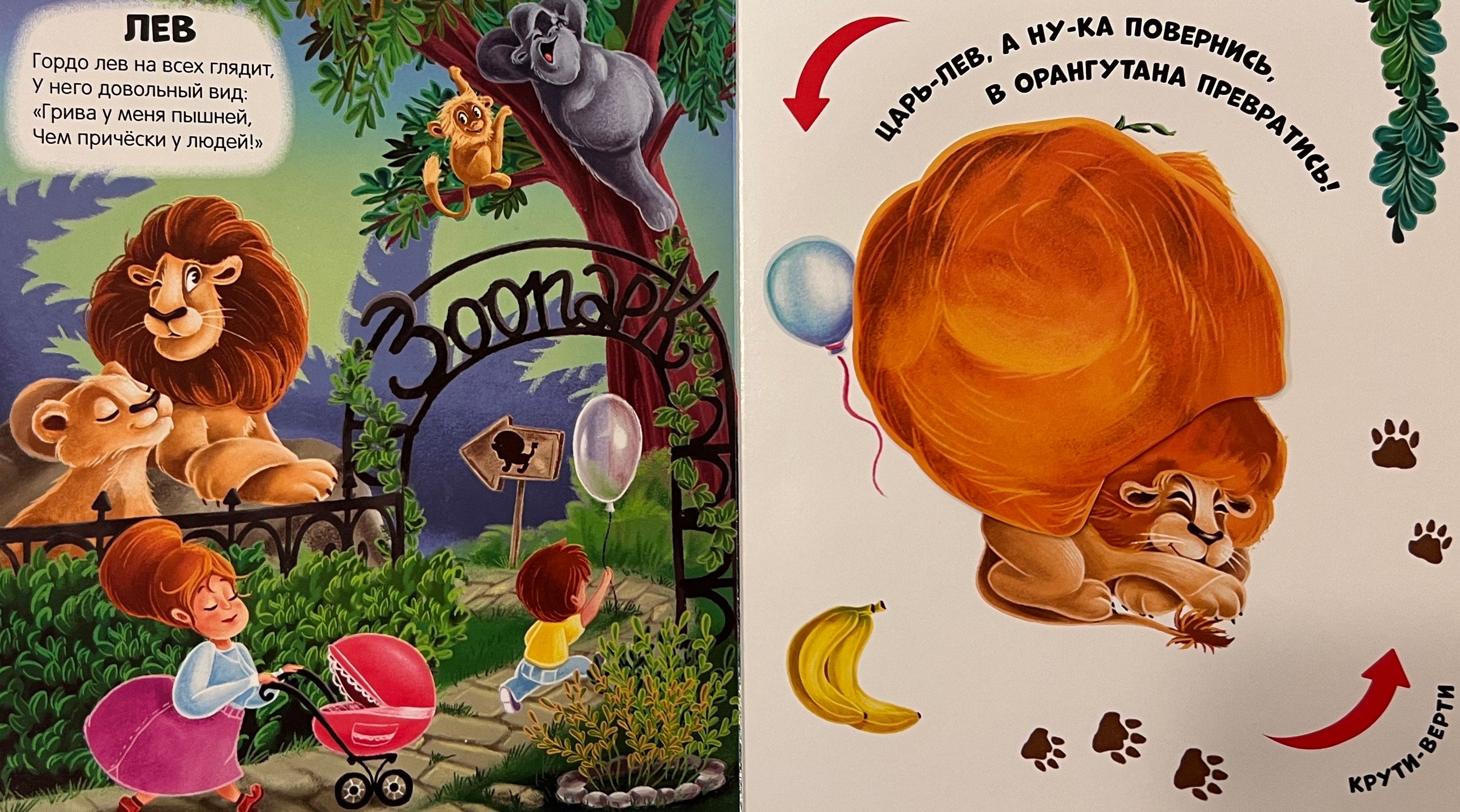 Серия «Чудесные превращения» от торговой марки Malamalama — это книги, полные волшебства. На каждом развороте — добрый стишок и вращающийся элемент, благодаря которому одна забавная и милая фигурка становится совершенно другой. Малыш сможет повернуть его пальчиком, не прилагая никаких усилий, и увидеть настоящее чудесное превращение. В книге «Превращения в зоопарке» знакомые малышам животные с лёгкостью становятся жучком, собачкой, котёнком или бабочкой.
