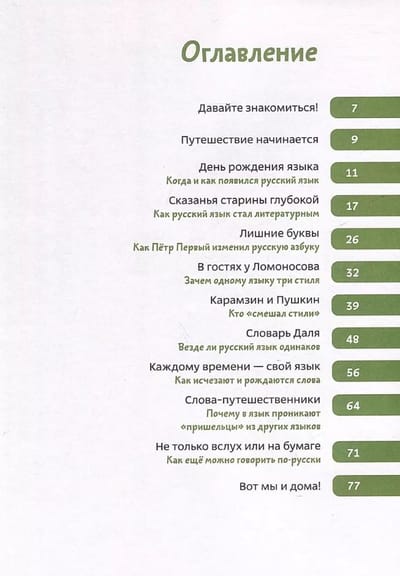 В новой книге серии детских энциклопедий с Чевостиком любимые герои познакомятся с историей русского языка. Они узнают, какие у него были «предки» и «родственники»; услышат, как говорили люди 900 лет назад; разберутся, что такое заимствованные и устаревшие слова и какие бывают литературные стили.