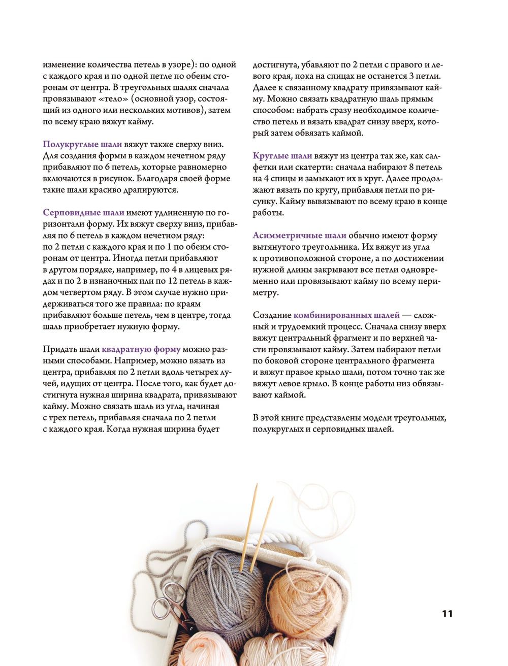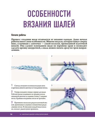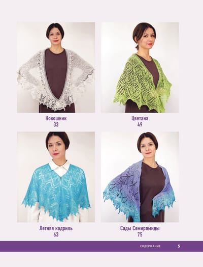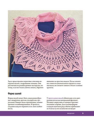 • Подробное изложение основных приемов вязания шалей.