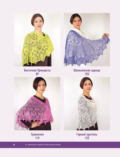 10 ажурных шалей Аллы Борисовой. Со схемами и подробными описаниями