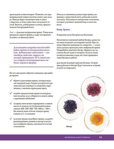 • Исчерпывающие советы по выбору пряжи и спиц.