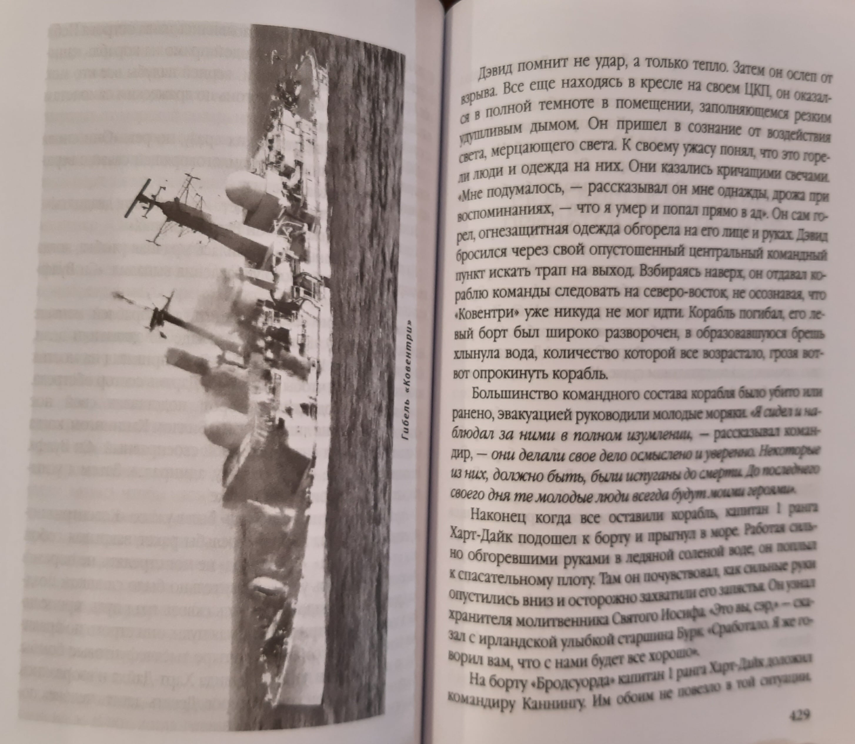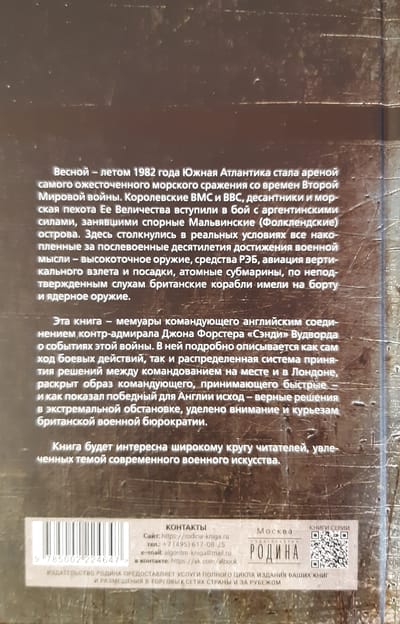 Весной – летом 1982 года Южная Атлантика стала ареной самого ожесточенного морского сражения со времен Второй Мировой войны. Королевские ВМС и ВВС, десантники и морская пехота Ее Величества вступили в бой с аргентинскими силами, занявшими спорные Мальвинские (Фолклендские) острова. Здесь столкнулись в реальных условиях все накопленные за послевоенные десятилетия достижения военной мысли – высокоточное оружие, средства РЭБ, авиация вертикального взлета и посадки, атомные субмарины, по неподтвержденным слухам британские корабли имели на борту и ядерное оружие. Эта книга – мемуары командующего английским соединением контр-адмирала Джона Форстера («Сэнди» Вудворда) о событиях этой войны. В ней подробно описывается как сам ход боевых действий, так и распределенная система принятия решений между командованием на месте и в Лондоне, раскрыт образ командующего, принимающего быстрые – и, как показал победный для Англии исход, – верные решения в экстремальной обстановке, уделено внимание и курьезам британской военной бюрократии. Книга будет интересна широкому кругу читателей, увлеченных темой современного военного искусства.