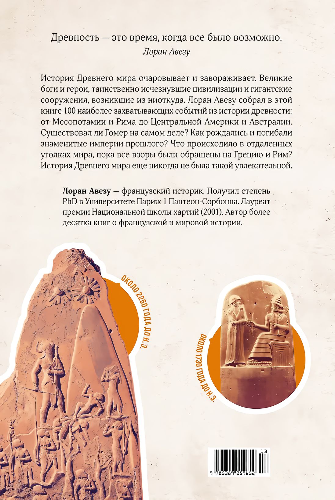 Величественные империи, загадочные пирамиды, таинственные культы и захватывающие сражения — Древний мир по праву считается ярчайшей эпохой в истории. Именно тогда возникли цивилизации и культы, человек изобрел колесо и научился земледелию, а поэты создали первые эпосы о богах и героях. Французский историк Лоран Авезу предлагает нам окунуться в калейдоскоп 100 величайших загадок древнейшей истории на всех континентах мира. Почему на самом деле первыми цивилизациями управляли не люди, а боги? Что скрывает загадка Стоунхенджа? Как возникла легенда о воинственных ассирийцах? Кто создал величайший индийский эпос «Махабхарата»? На страницах этой книги вы встретите царя Мидаса и Конфуция, познакомитесь с правителями Вавилона и героями Троянской войны, исследуете мезоамериканскую цивилизацию ольмеков и города-государства шумеров. Полная интриг и загадок, эта эпоха великих свершений никого не оставит равнодушным.